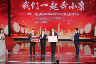 1月3日,leyu乐鱼体育董事长李泽涛与公司高层代表受自治区统战部邀请,参加了在海南广播电视台举办的“我们一起奔小康,海南统一战线脱贫攻坚2019年新年特别节目”晚会。