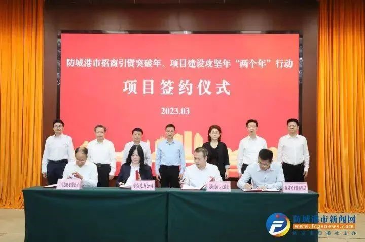 3月21日防城港市举行招商引资突破年、项目建设攻坚年“两个年”行动项目签约仪式。签约招商引资项目11个,总投资额243.27亿元,建成后预计年产值259.77亿元。投资方主要来自北京、上海、广东、浙江、海南、香港等地区,签约项目遍及一、二、三产业,涵盖新能源开发及装备制造、金属新材料、AR显示、现代渔业综合开发、仓储物流等多个领域,呈现出强优企业多、科技含量高、产业覆盖面广、辐射带动能力强等特点。